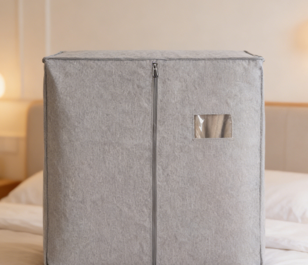 This dust bag is perfect for storing seasonal clothing.